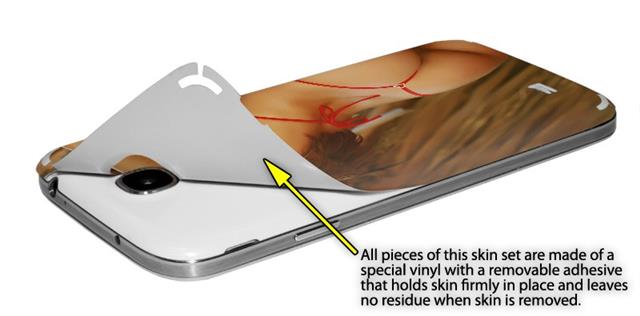 • Decal style vinyl skin covers front and back of Samsung Galaxy S4 phone.